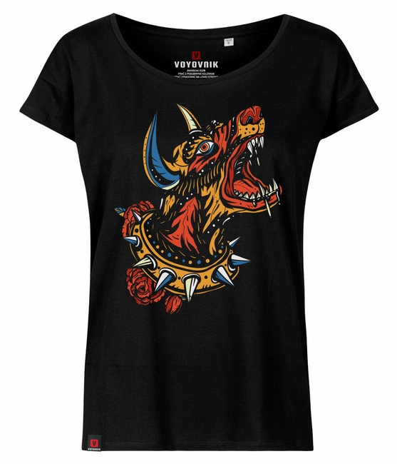 Koszulka damska oversize VOYOVNIK "Demon Doberman" - czarna