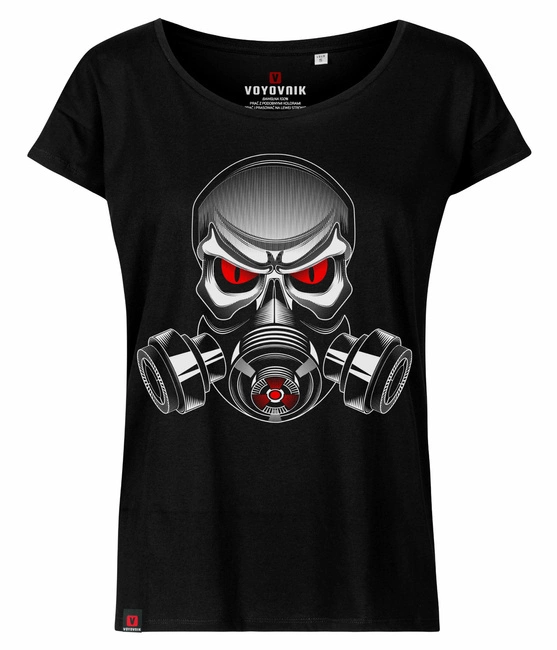 Koszulka damska oversize VOYOVNIK "Skull Gas Mask" - czarna