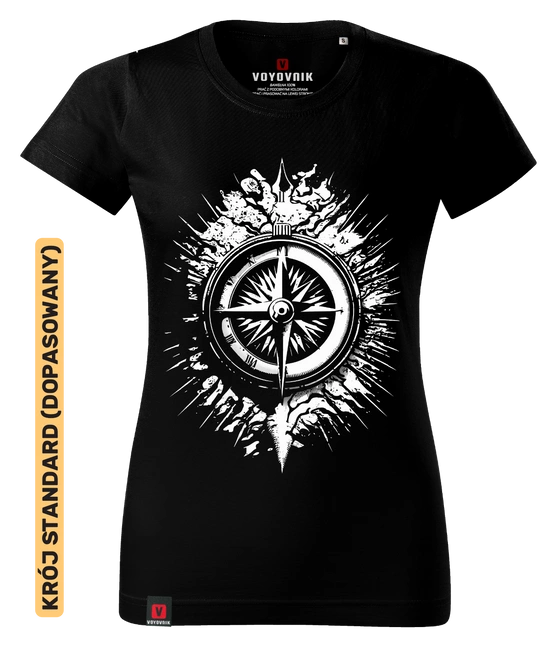 Koszulka damska standard VOYOVNIK "The Traveller's Guide" - czarna