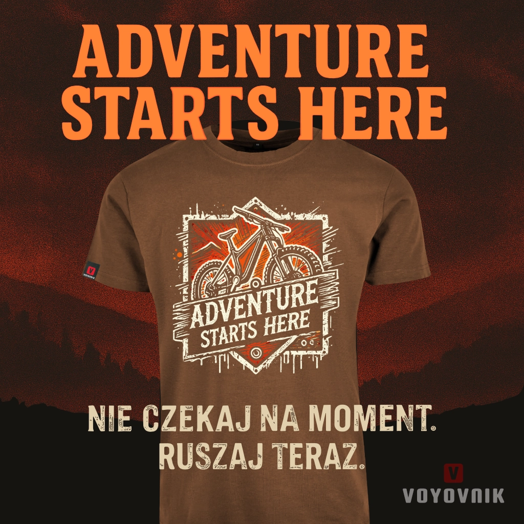 Centralnie umieszczony rower symbolizuje niezależność, a wyrazisty napis przypomina, że każda przygoda zaczyna się dokładnie w tej chwili i w tym miejscu. Koszulka, która mówi wszystko, zanim zdążysz ruszyć z miejsca.