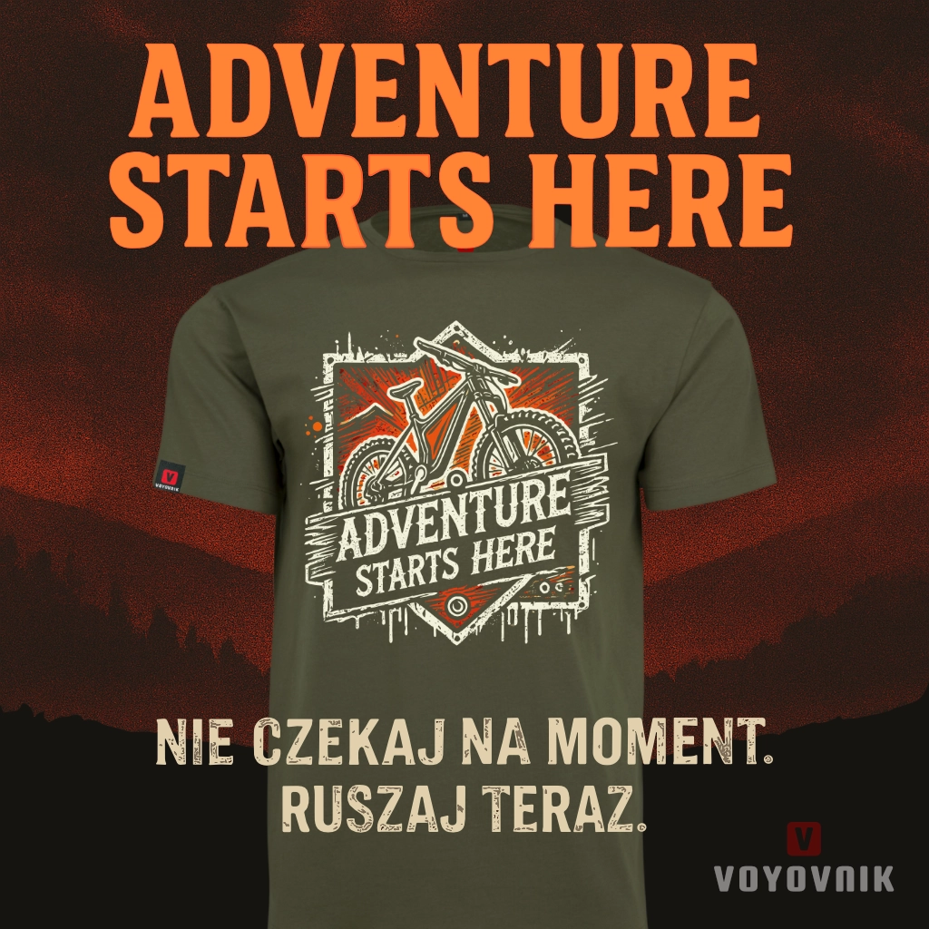 Centralnie umieszczony rower symbolizuje niezależność, a wyrazisty napis przypomina, że każda przygoda zaczyna się dokładnie w tej chwili i w tym miejscu. Koszulka, która mówi wszystko, zanim zdążysz ruszyć z miejsca.