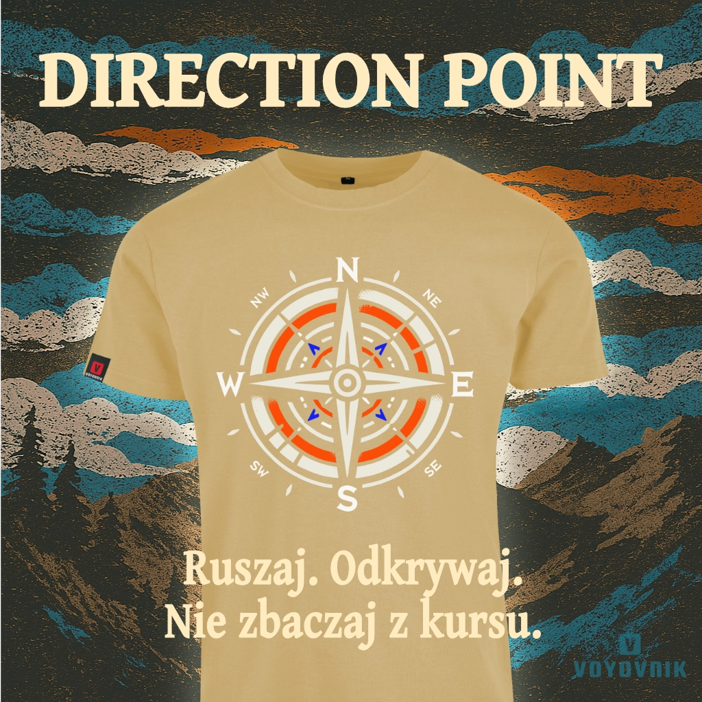 Niezależnie, czy ruszasz na północ, południe, wschód czy zachód – koszulka „Direction Point” zawsze pokazuje, gdzie warto być. Symbol róży wiatrów w nowoczesnym stylu to wizualne przypomnienie, że droga, którą wybierzesz, należy tylko do Ciebie.