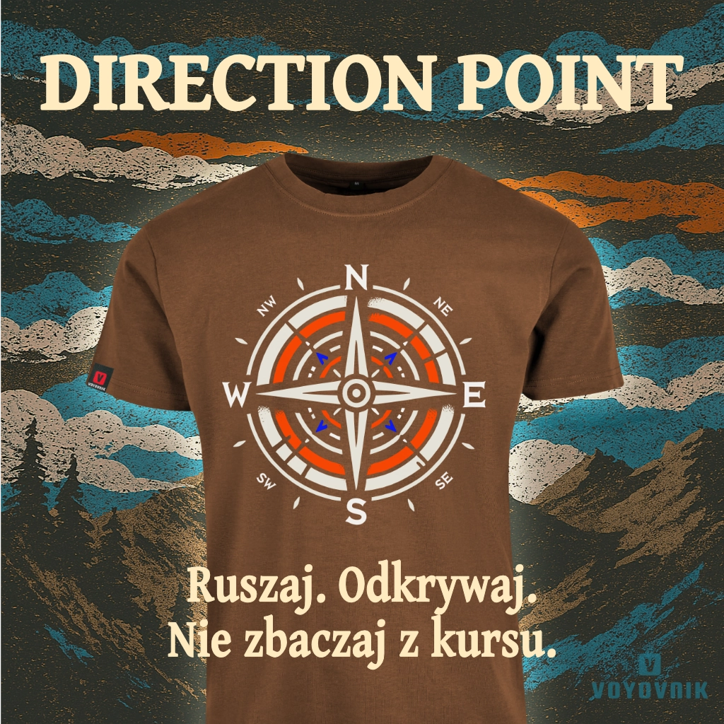 Niezależnie, czy ruszasz na północ, południe, wschód czy zachód – koszulka „Direction Point” zawsze pokazuje, gdzie warto być. Symbol róży wiatrów w nowoczesnym stylu to wizualne przypomnienie, że droga, którą wybierzesz, należy tylko do Ciebie.
