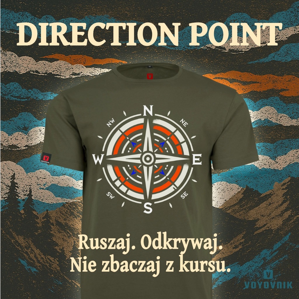 Niezależnie, czy ruszasz na północ, południe, wschód czy zachód – koszulka „Direction Point” zawsze pokazuje, gdzie warto być. Symbol róży wiatrów w nowoczesnym stylu to wizualne przypomnienie, że droga, którą wybierzesz, należy tylko do Ciebie.