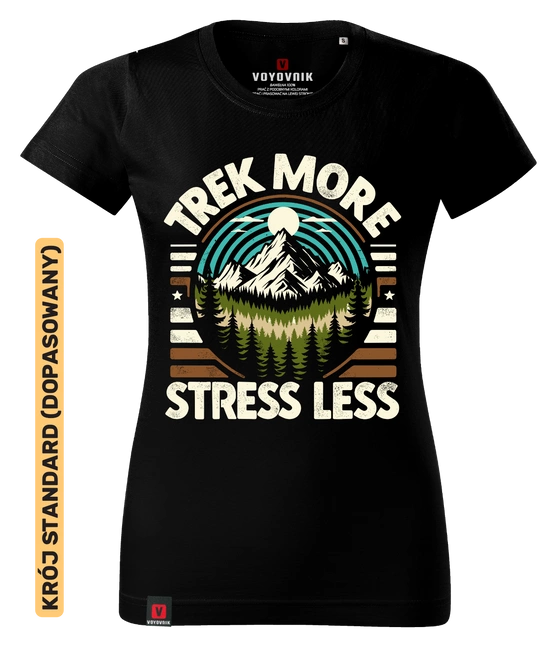 Koszulka damska standard VOYOVNIK "Trek More, Stress Less" - czarna